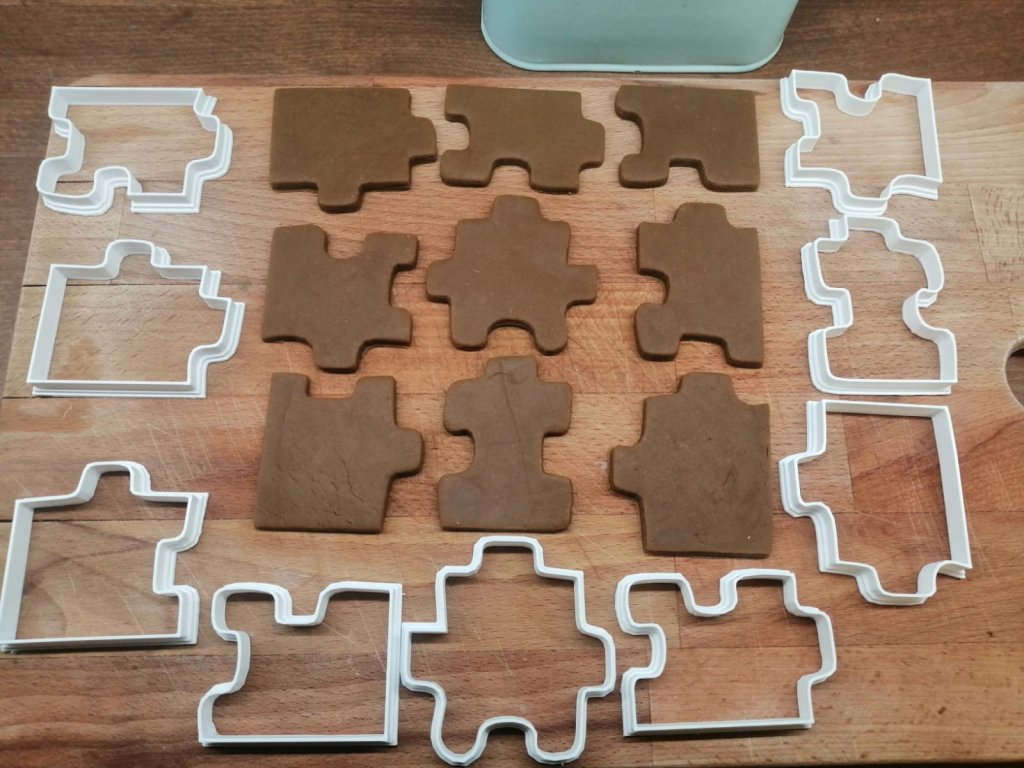 Sada devíti různých plastových vykrajovátek pro výrobu dílků oblíbené skládačky. Radost udělá nejen dětem ale i dospělým. Vykrajovátko můžete použít na výrobu cukroví, marcipánu, sušenek nebo vykrajování fondánu.